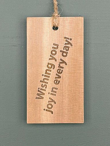 Our tags are made from salvaged off-cuts, usually Western Red Cedar; Yellow Cedar and Douglas Fir. Grain, colour and texture will vary from piece to piece.
