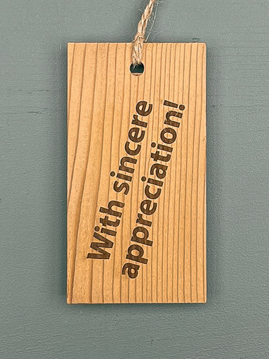 Our tags are made from salvaged off-cuts, usually Western Red Cedar; Yellow Cedar and Douglas Fir. Grain, colour and texture will vary from piece to piece.
